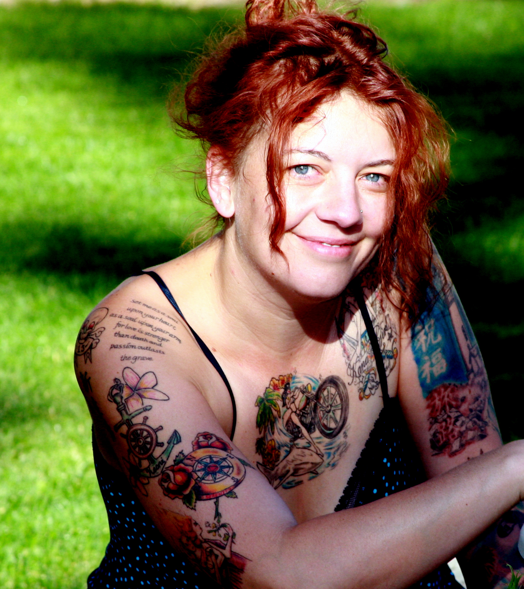 And here I am, for the first time in decades, thinking, “Now there’s a Barbie I might actually like to meet.”  Because tattoos mean stories, and (Writers, listen up!) they are also a “free pass” to hear the greatest stories from a perfect stranger in the produce department or wherever.  As in, “Go directly to jail Story, do not pass Go up a Story, do not collect $200 inconsequential things like introductions”–because a simple “I gotta check out your ink” will gain you instant access to the most interesting material you hadn’t imagined.  On the flip side, they give us the chance to tell stories–I’m thinking of my second-grade classroom-visit last month, when Elena Grace seized the opportunity of her teacher complimenting my Art to show him (proudly) HER tattoo on my arm, and explain how it relates to her name…