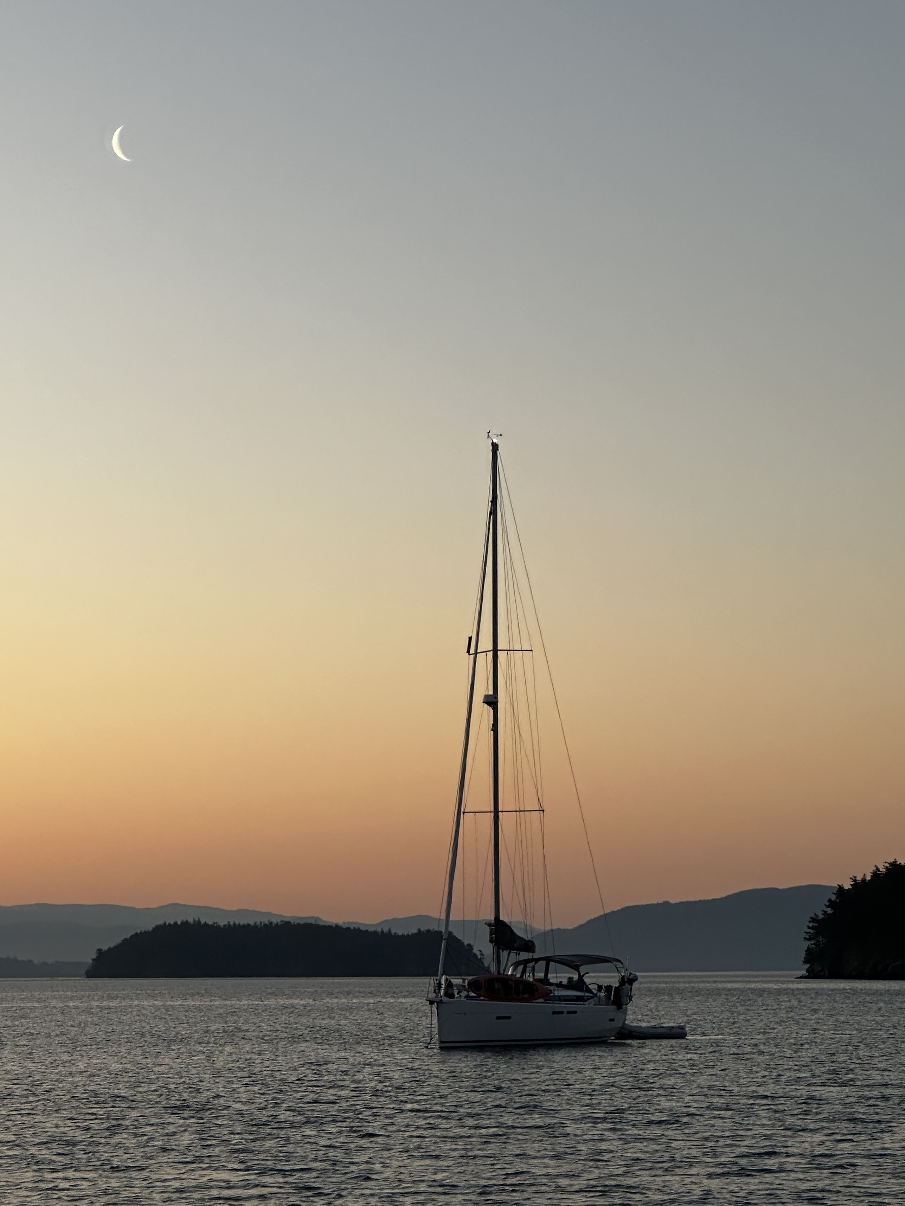 The pleasant foil to that embarrassing arrival followed a few years later, when we chartered a boat in the same islands to spend a week cruising with my mom and my small kids. Coming in, once again, to Friday Harbor—once again jam-packed with onlookers—I pulled off the docking this time with such finesse I may never in my life better it.