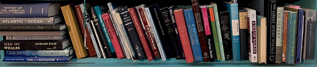 In the course of writing my whale-sized whaling novel, I’ve accumulated a long shelf’s worth of books on whaling, and whales, and wooden sailing ships, and navigation—because for a nerd-brain like mine, at least half the fun is in the research and the details.