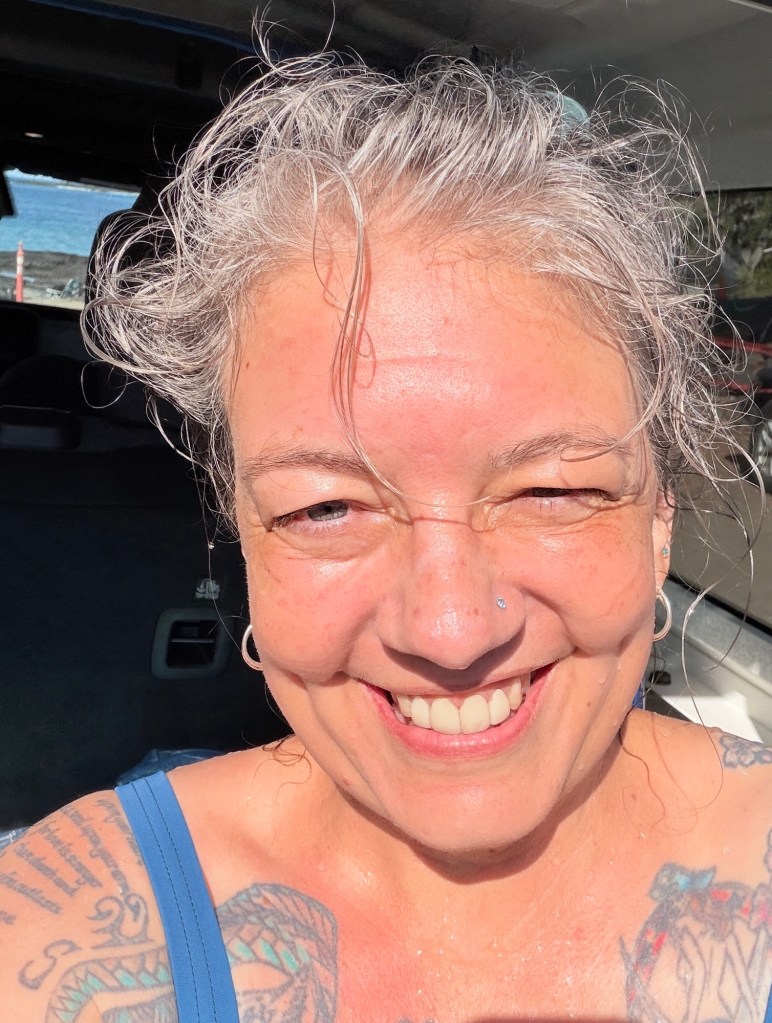 We’ve been back to town now to rent scuba gear again, for tomorrow morning. And to tank up on some Kona coffee. Tonight we have a picnic spread of leftovers from yesterday’s seafood bounty… Did I say it already? Radiating joy!
