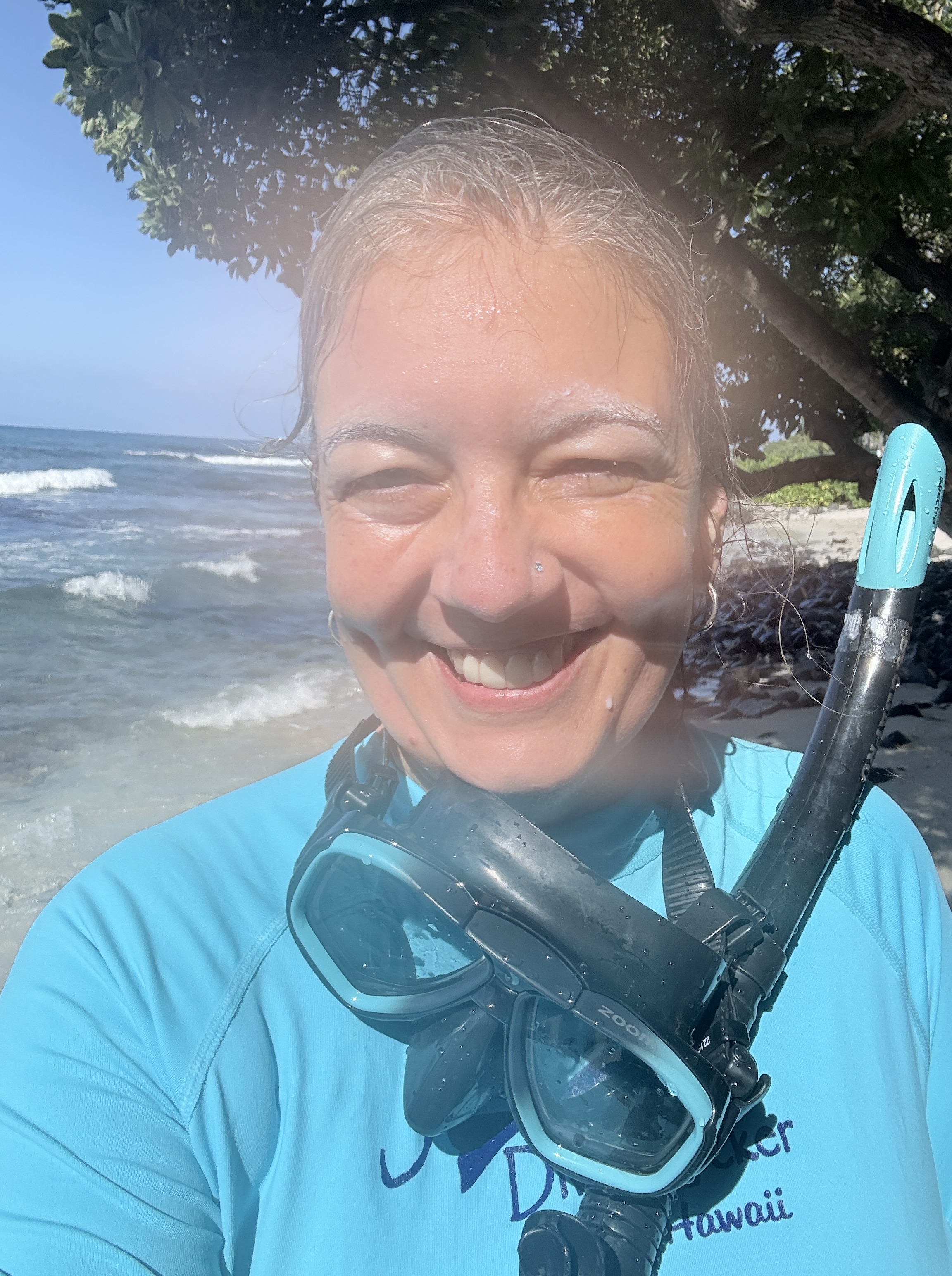 That was our first day in Hawai’i (or our first day’s evening, I should say), and there I was, already thinking about the now-ness of now. But it was with a very different flavor of feeling than our last time in the water, on our final day. The manta-snorkel was something I was thrilled to do, but not very comfortable during. Our final snorkel was something I didn’t want to end.