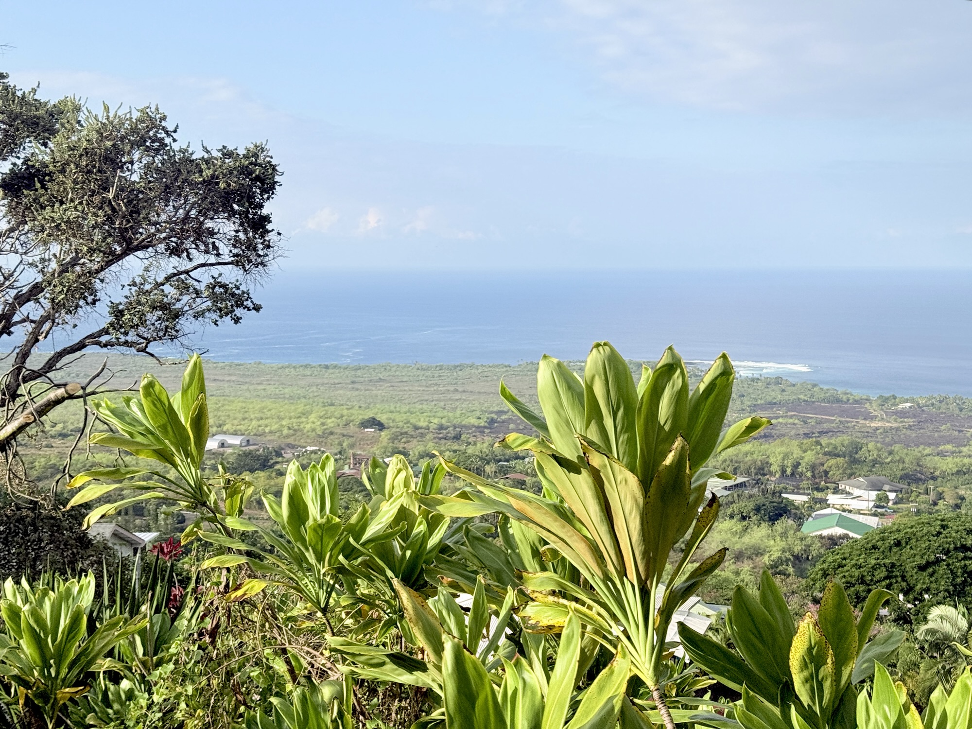 We’re driving south from Kona on the Mamalahoa highway, the Jeep’s air conditioner blowing against the sole of my one bare foot propped up on the dash. I’m dressed in the tank-top swimsuit I’ve been living in all week, and the Tshirt-fabric skirt I pull on until it’s water-time. I have my left hand on a bottle of chilled water, my right holding my new phone, which is giving us directions to our turn-off, and ready for a picture out the window. The road has climbed a little, just enough for my ears to pop once, and when there’s a gap in the trees I’m looking down at the coastline, the deep blues of ocean meeting the lush greens of land, with hints of the black lava showing through—all of it framed in the foreground by the greens of roadside trees and bushes whose names I don’t know. I had to learn the Hawai’ian and English and Latin names of every species that can be found here underwater, but I don’t know any trees besides bougainvillea and plumeria. The visor is flipped down—it’s early, and the low sun is in my eyes on some of the highway’s turns, and I’m squinting a little because my glasses (which “transition” into sunglasses when sunlight hits them) don’t do their thing inside the car. On the seat behind me is a bag from the ABC store, with all of our beach towels (still salty, but dried out by hanging around our condo overnight), and a small cooler with picnic sandwiches. In the far back is our rented scuba gear, and our own well-used fins, snorkels, masks (mine with vision correction). We’ve only rented one tank apiece, this time, but we’re both really good with air-use, and we’ll get a good two dives off the single tank. We’re going underwater today, and I’m jazzed.
